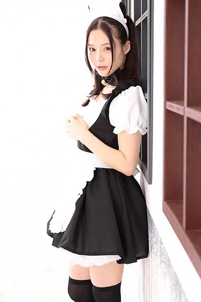 黒×白のミニワンピは胸元ギャザーでセクシーに!かわゆい猫耳カチューシャとチョーカーが萌え〜なコスプレ衣装で、ご主人様にご奉仕するニャン!