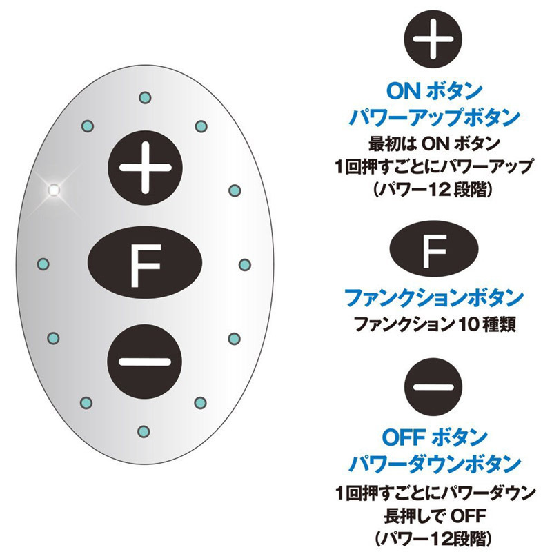 ●Type-Rの「BIG」ver●標準サイズのたまご型ローター●初心者に嬉しい簡単操作(ボタンスイッチ)●電源ON&パワーUPは+ボタン●電源OFF&パワーダウンは-ボタン●振動切り替えはFボタン●12段階の強弱パワー&10種類の振動パターン●満足感を得られる全120種類の快感振動●LEDランプ(12個)を搭載●静音・生活防水仕様●単四電池×2本使用。