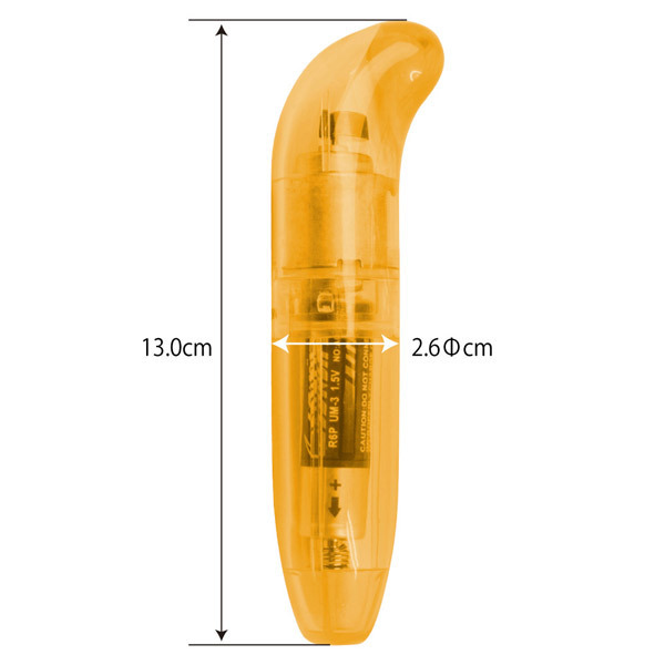 ●全長13cmのコンパクトボディ●スケルトンのオレンジタイプ●片手でも楽々なスティック型●先端のフックでポイント責め●小さくてもパワフルに振動●高性能な生活防水&静音設計。