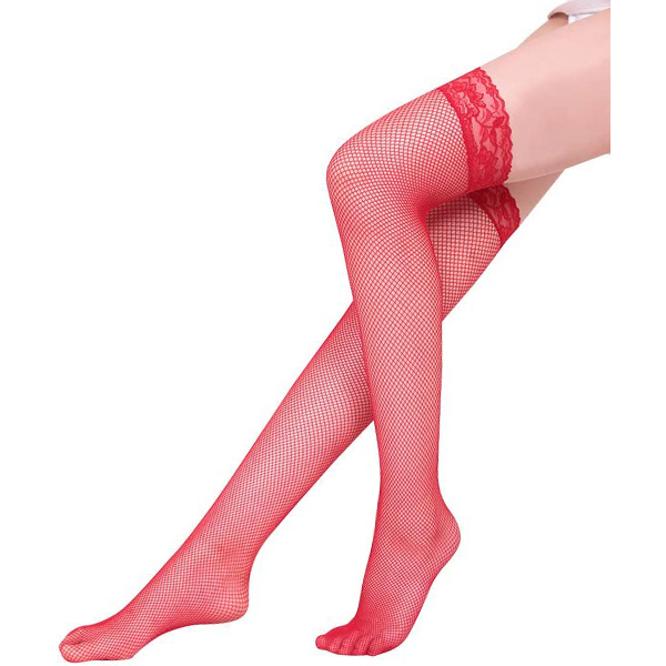 ●インパクト抜群のレッドカラー●程よく肌見せできる中サイズの網目●つま先切り替え無しタイプ●エレガントな花柄レースの履き口。