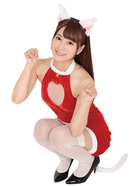 クリスマス、サンタコスチュームの激安通販サイトはコチラ!聖なる夜はふわふわ尻尾付きの可愛いクリスマスコスプレで盛り上げるにゃん♪赤×白のノースリーブワンピースと猫耳カチューシャの2点セット。