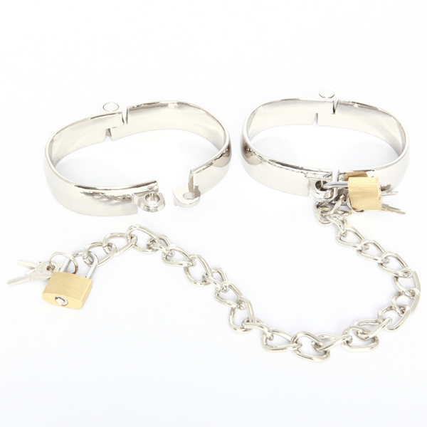 楕円のカタチで少し緩めな装着感が自慢のこちらの足枷は、蝶番を中心に開閉するタイプで装着もしやすく、付属の南京錠でロックすることで、逃げられない拘束感を与える事が出来ます!チェーン長は30cmとなっており、これはプレイに最適な長さで足の動きを抑制するのにピッタリ♪両足を拘束しながらのローター責めやバイブ責め等、ひとつは持っておきたいSMグッズです。