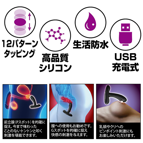 よくあるバイブ特有の振動とは異なり、まるでマッサージ機のような震え方が新感覚のバイブレーターです♪バイブとしては丁度よいサイズ感で挿入シャフト部分のタッピング機能はタッピングボタンを押す度に3パターンから切替可能!振動ボタンは押す度に12パターンの切り替えが出来、電源のオンオフも起動時にワンプッシュでOFFと簡単操作♪付属のアタッチメントを装着することで敏感な箇所をさらにピンポイントで刺激できます。
