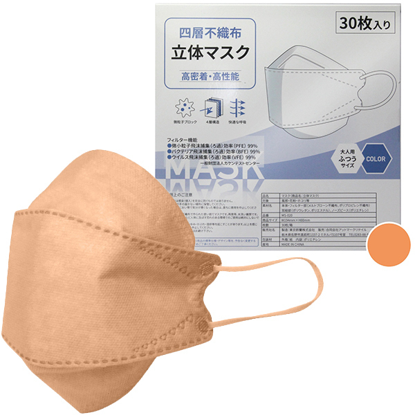 > 四層不織布立体マスク 30枚入り (アプリコット)