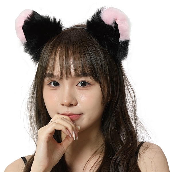 > エロコス もふもふ耳カチューシャ (黒×ピンク)