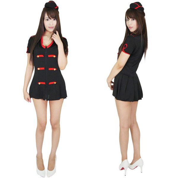 赤×黒ワンピースとキャップ、セクシーなTバックがセットになったセクシーデザインのキャビンアテンダント衣装。