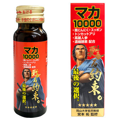 「甦る約束 50ml」は「マカ」10000mg+「濃縮酵素(植物発酵エキス)」2800mgをベースに、イノシトール、トンカットアリ、L-シトルリン、L-アルギニン、醗酵黒ニンニク、スッポン更に高麗人参など80種類以上を配合した栄養滋養ドリンクです。