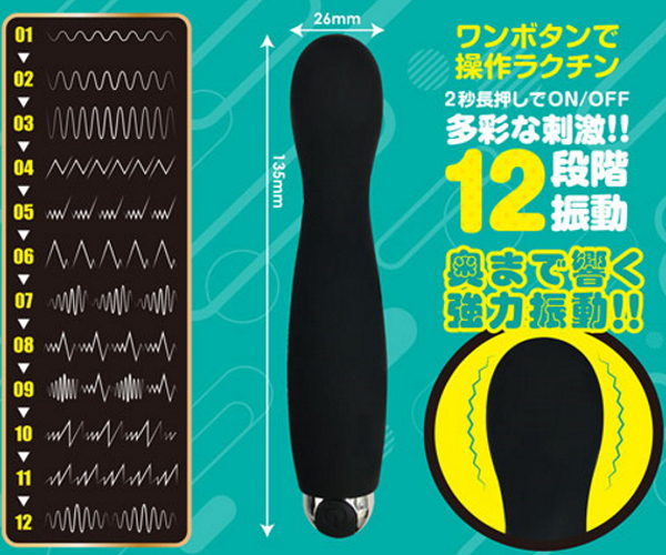 小型なのに奥まで響く強力振動!!12段階の振動パターンが多彩な刺激を生み出す。