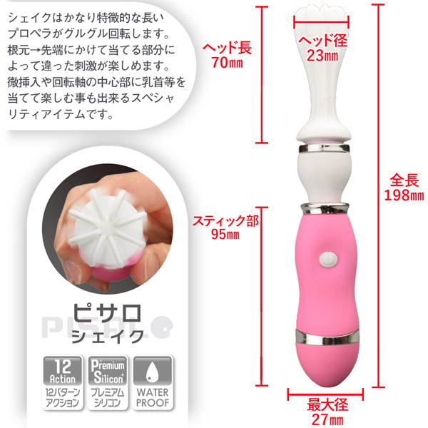 長いプロペラ付のヘッド部分がクルクルと回転し敏感部分を刺激♪当てる部位によって異なる刺激をお楽しみいただけます。