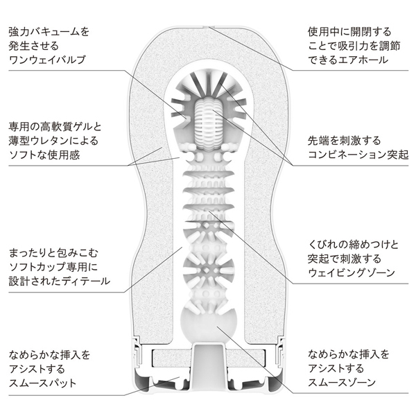 白テンガは柔らかな弾力で包み込む優しい刺激が特徴のソフトタイプ!程よい締め付けとまったりと絡みつく刺激をお楽しみください。