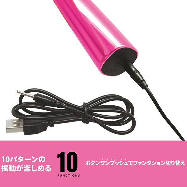 驚異のハイパワーを誇る10パターン振動のスティックローターで、バレット(弾丸)型だから扱いやすい!ピンポイント責めから全身を這わせるように刺激するなど使い方はあなた次第♪男女ともにマルチに使えるハイパワーモーターを内蔵した高性能ローター!振動音が小さい静音仕様でボタン長押しで電源ONOFFが切り替わるので操作も簡単です♪充電用USBケーブル付属。