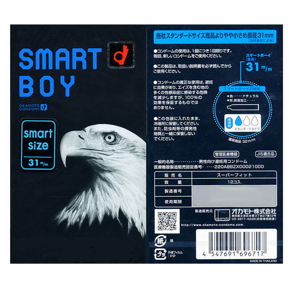 スマートな方にもしっかりフィット!オカモト社のレギュラー商品より細身に仕上げた直径31mmサイズのコンドーム(12個入)。
