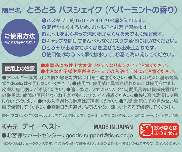 爽やかな香りが暑い時期に最適!美容成分配合のペパーミント香る入浴剤(日本製)。