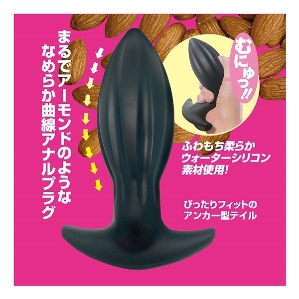 アーモンドフォルム×ウォーターシリコン!形状と素材にこだわった、新感覚ア●ルプラグが新登場!アーモンドナッツのような形状は、先端部に向かってすぼんでいく流線フォルムとなり、スルッとした挿入感を生み出します。